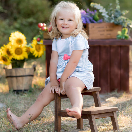 OrganicEra Striped Dress with bow, Green Striped